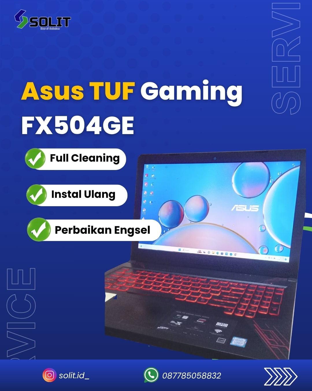 Maintenance atau upgrade komponen pada laptop atau komputer. Seperti cleaning rutin, ganti thermal paste, Ganti atau upgrade HDD ke SSD, Tambah atau Upgrade RAM dan lainnya.